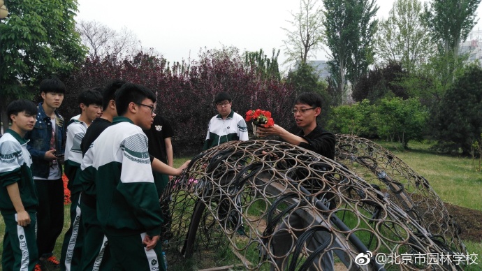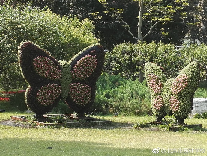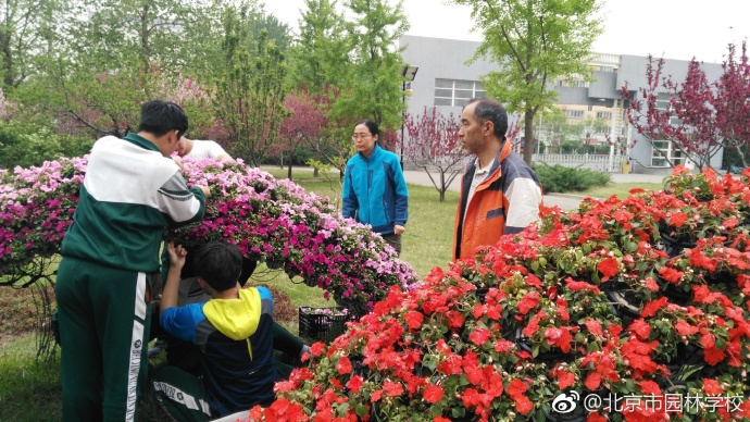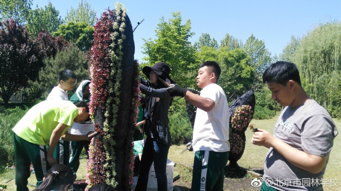 4月份,园林学校与北京市花木公司合作开展的“园林植物应用”课程进入现场集中教学阶段。4月17日至30日,花木公司技术人员与学校任课教师、实训指导教师共同授课,帮助园林技术专业学生完成校园春季花坛施工的任务。学生在老师的指导下,给蝴蝶骨架里埋喷灌管线、填充种植基质、包遮荫网;为花拱搭喷灌管线、安放卡盆花等,圆满完成了花蝴蝶、花拱、花球等校园立体花坛施工。