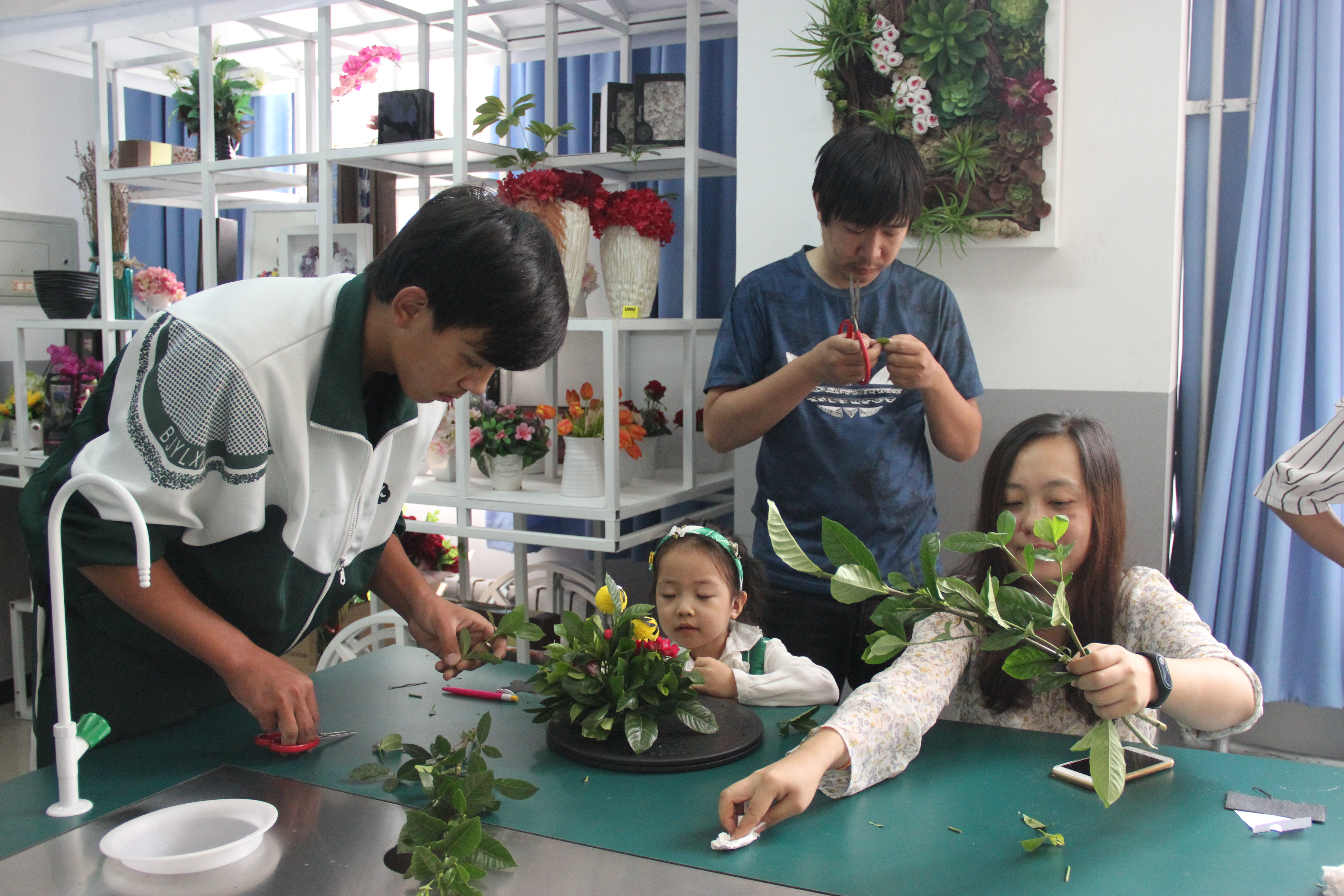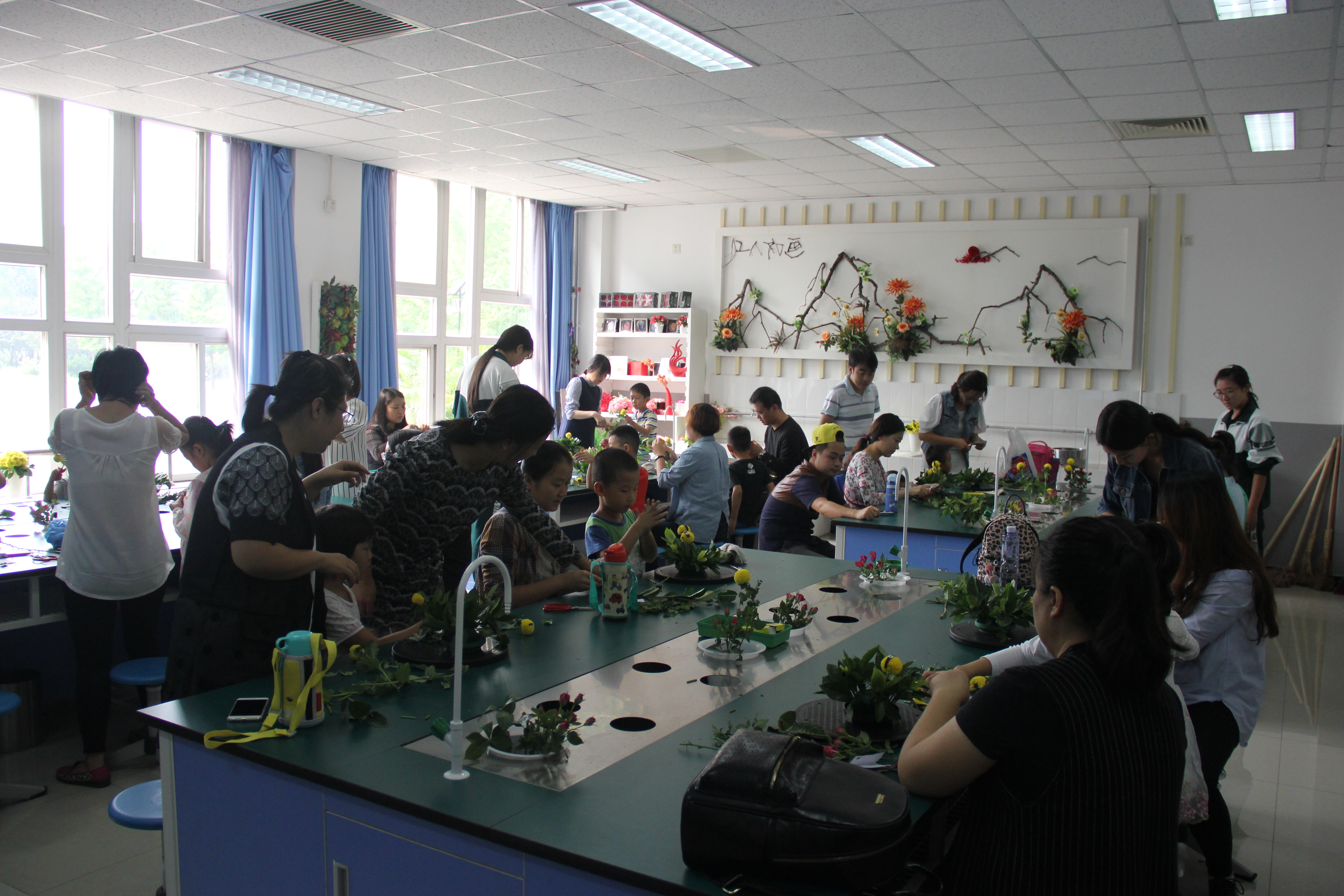 9月24日,园林学校举办全国科普日--花艺科普进社区活动。来自学校周边9个社区的16组家庭参加。活动中学校花艺教师向大家介绍了乒乓菊这一植物种类,同时根据乒乓菊的外形特点组织大家创意制作“小黄人”主题花艺作品。 活动得到参加者的一致好评,充分发挥了学校科普教育基地的功能。