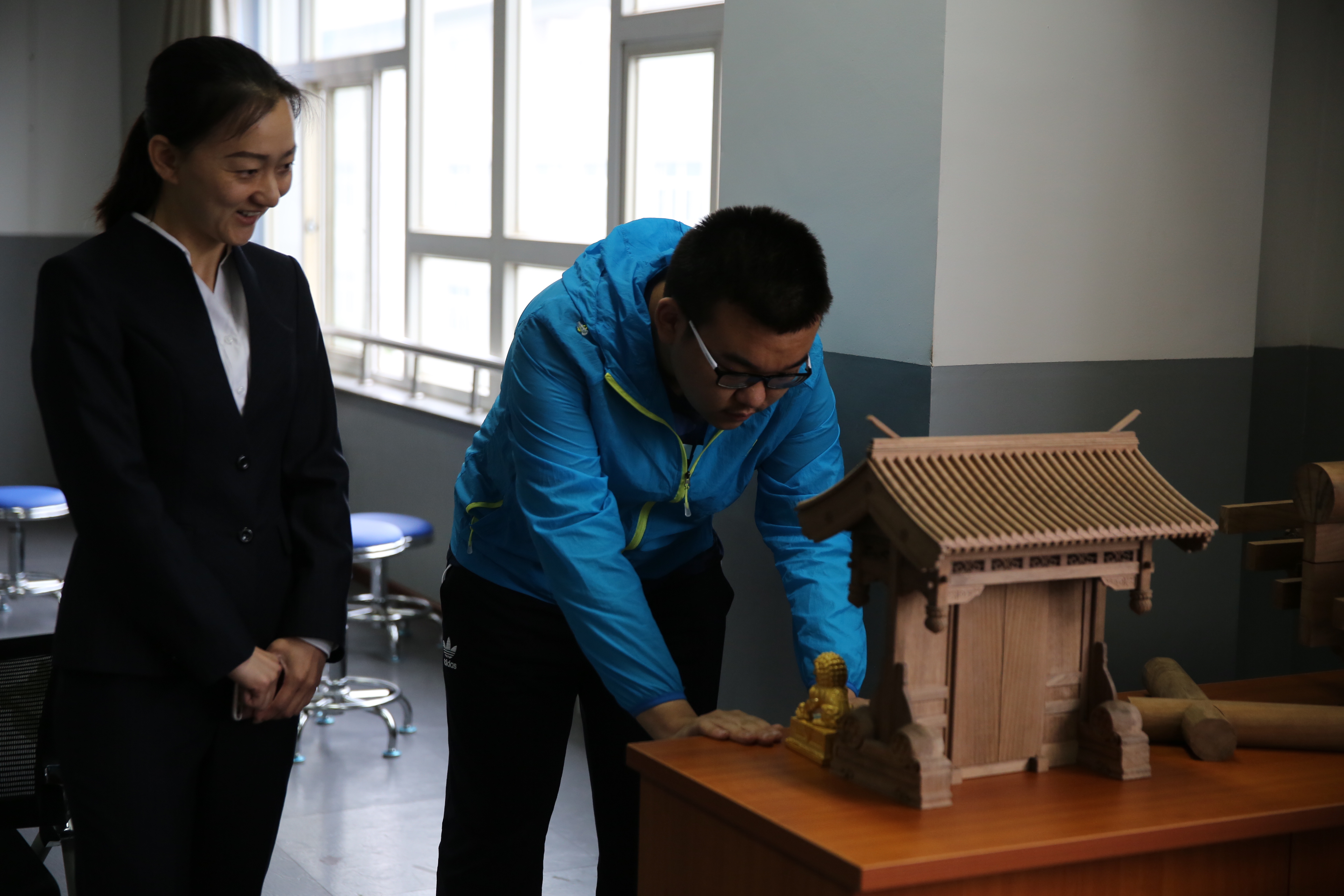 学校依据行业对技能人才的需求,今年新开设了古建筑修缮与仿建专业,在古建认知实训室,市民可以清楚的看到皇家园林建筑中榫卯、斗拱等常见的构件,聆听教师讲解垂花门、吻兽等古建中的精华部分,感受中国传统文化。