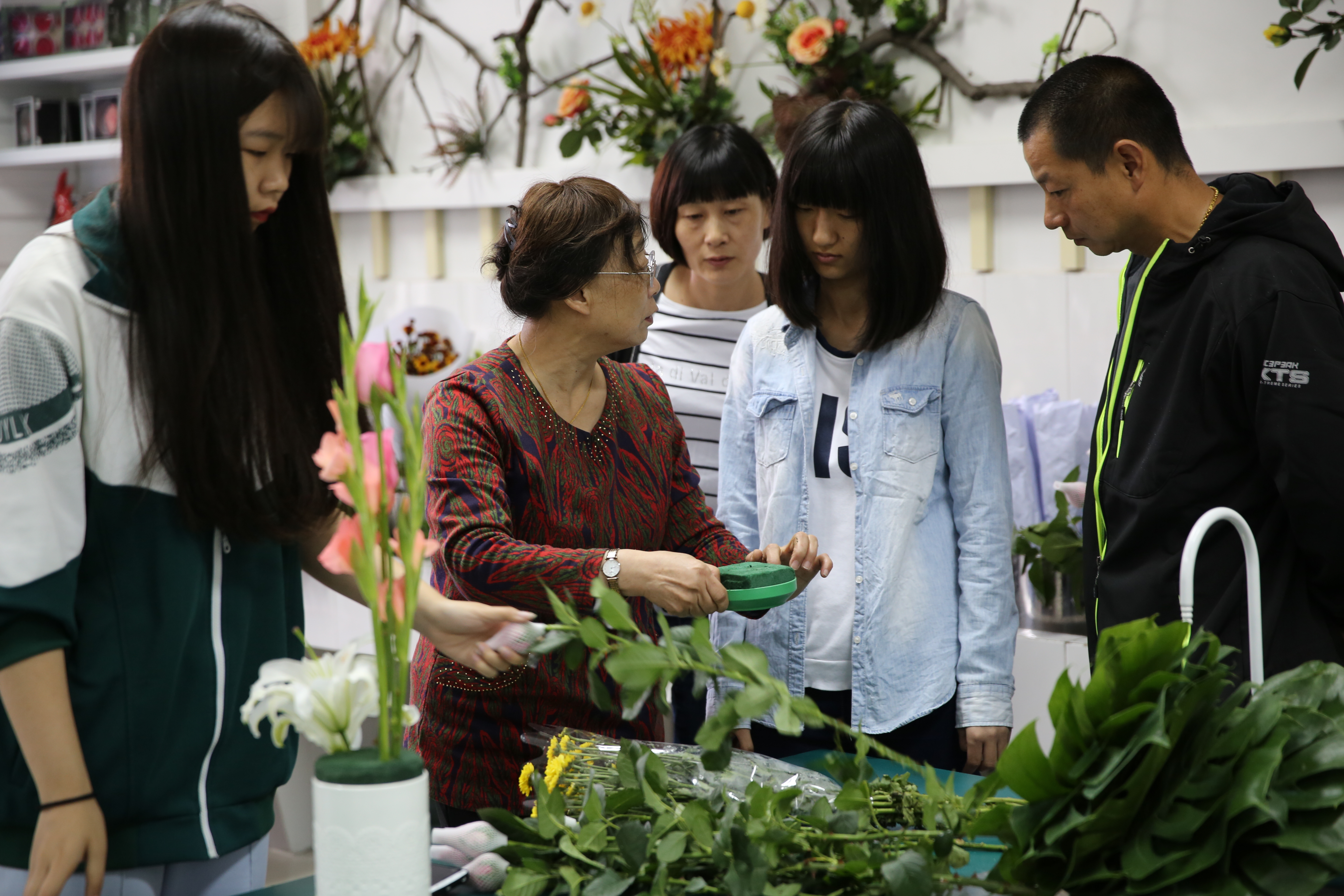 此次开放日活动主要安排了特色作品展示和专业课程体验。包括艺术插花、盆景、水陆两栖缸造景、书画摄影等4项学生技艺作品展示和插花制作、叶画制作、工程测量、伴侣犬正向训练、古建模型认知等5项专业课程互动体验。