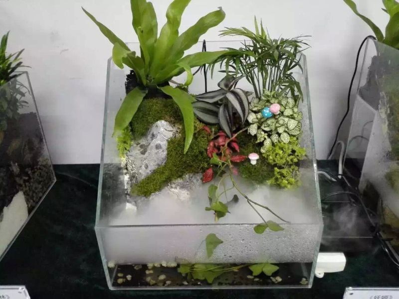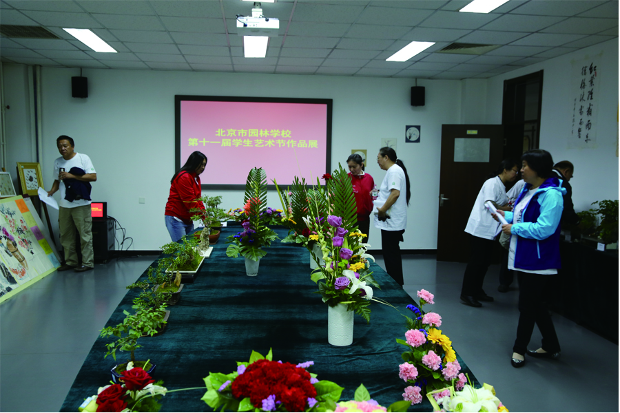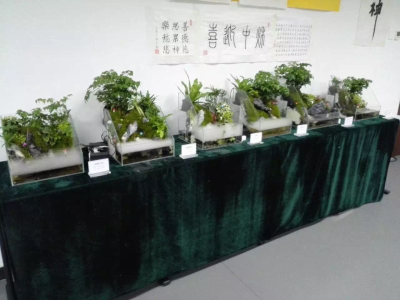 作品展示中除软硬笔书法、手工剪纸、美术摄影、插花盆景等经典保留项目外,新增水陆两栖缸造景比赛获奖作品展。水陆两栖生态造景缸的创意来源于人们常见的有山有水的自然景观,将这种大自然美景微缩到一个空间有限的缸体中,从而达到美化居室、陶冶情操的目的。宠物养护与经营专业的学生通过对水陆缸的造景与装配,了解水生动物与两栖类动物的生境,能为他们提供更好的饲养条件,同时,也培养了学生的鉴赏能力、团队合作能力和关爱动物、保护环境的意识。