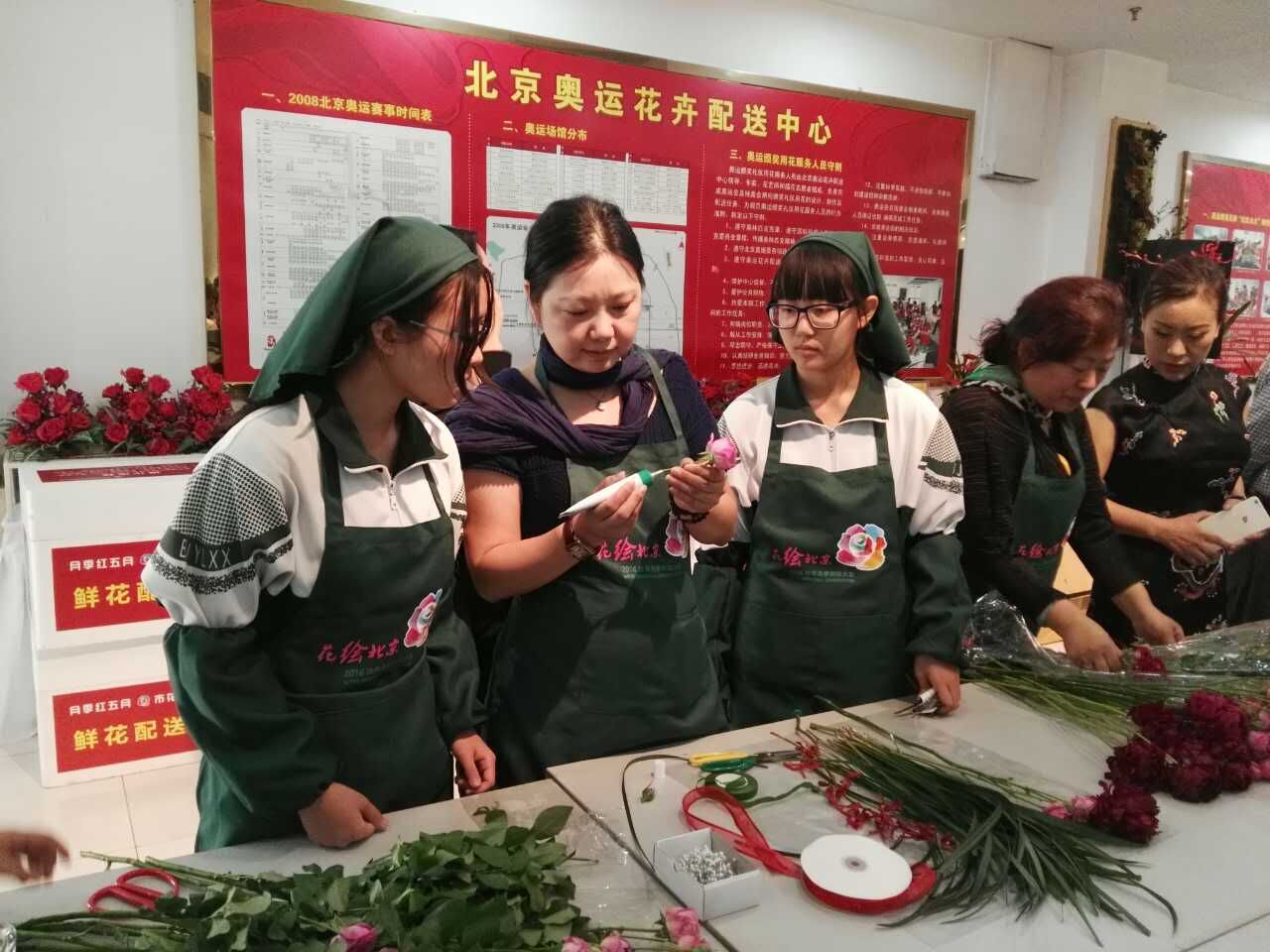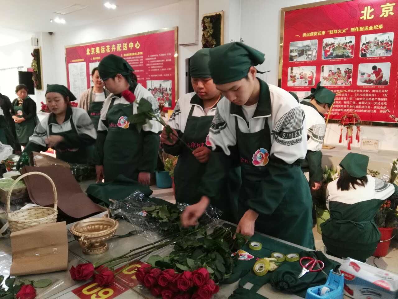 4月29日上午9时 ,由市花进万家组委会和北京花卉协会等单位联合开展的“月季红五月,市花进万家”主题公益活动在奥运花卉配送中心举办,园林学校20位师生志愿者受邀参加此次活动。一大早师生们刚进驻活动场地就忙碌起来,认真仔细地为活动准备所需花材。摘叶、整枝、去刺……同学们将课堂所学熟练地应用到实践操作中,向过往嘉宾展现出园林学校莘莘学子良好的精神面貌和较高的专业素养,也体现了学校立足行业、服务行业、服务社会的办学思想。