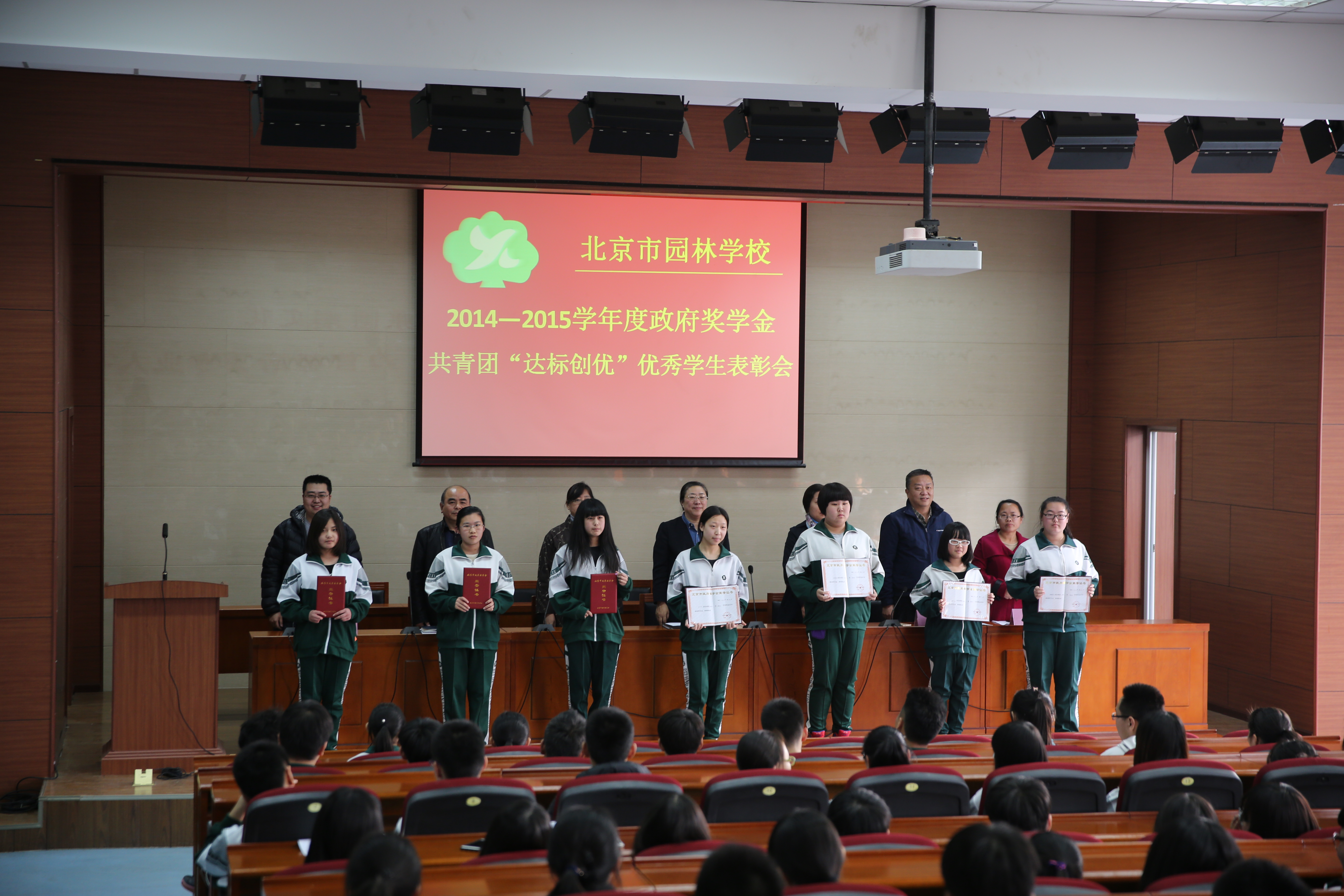 近日,学校召开“北京市政府奖学金”和“达标创优”优秀学生表彰大会。全校师生参加。会上教师代表发言,对获奖同学表示祝贺,同时提出鼓励和希望。获奖学生代表和新生代表依次发言,表达了对老师的感激,并表示要继续认真学习、积极向上,成为一名优秀的园林学子。最后,校长做总结性发言,对全校师生提出希望:“立君子志”、“养君子德”,奋勇争先,努力开创学校发展的新局面。大会表彰市政府奖学金获得者23名、达标创优优秀学生5名。
