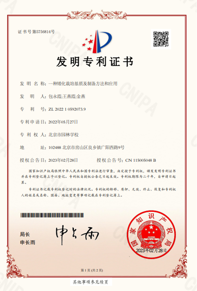 一种矮化栽培基质及制备方法和应用(发明专利)) |