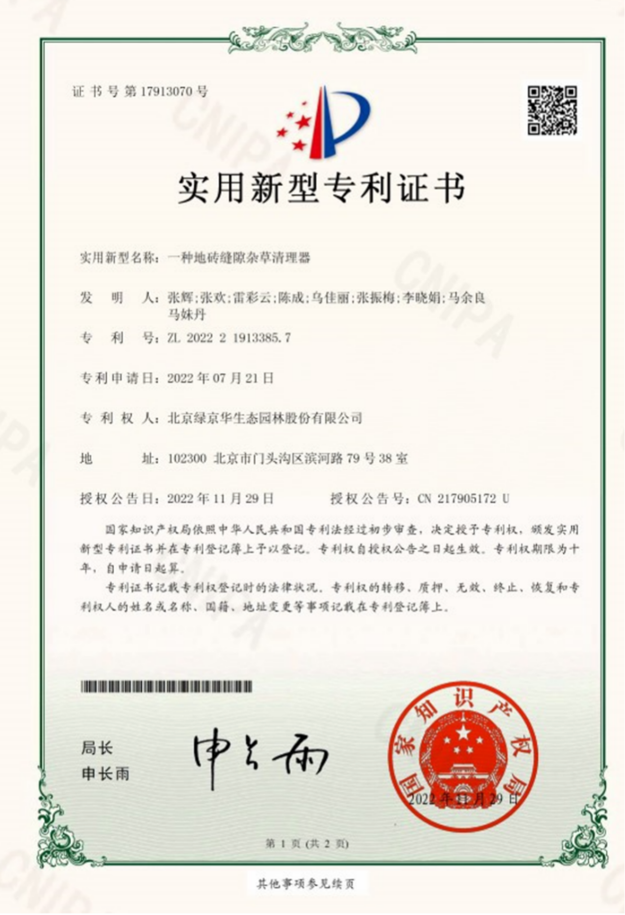 一种地砖缝隙杂草清理器(实用新型专利) |