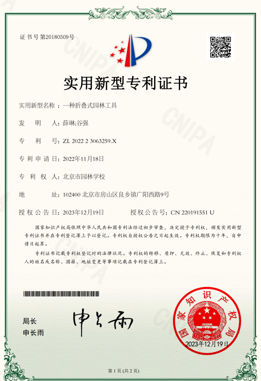 一种折叠式园林工具(实用新型专利) |