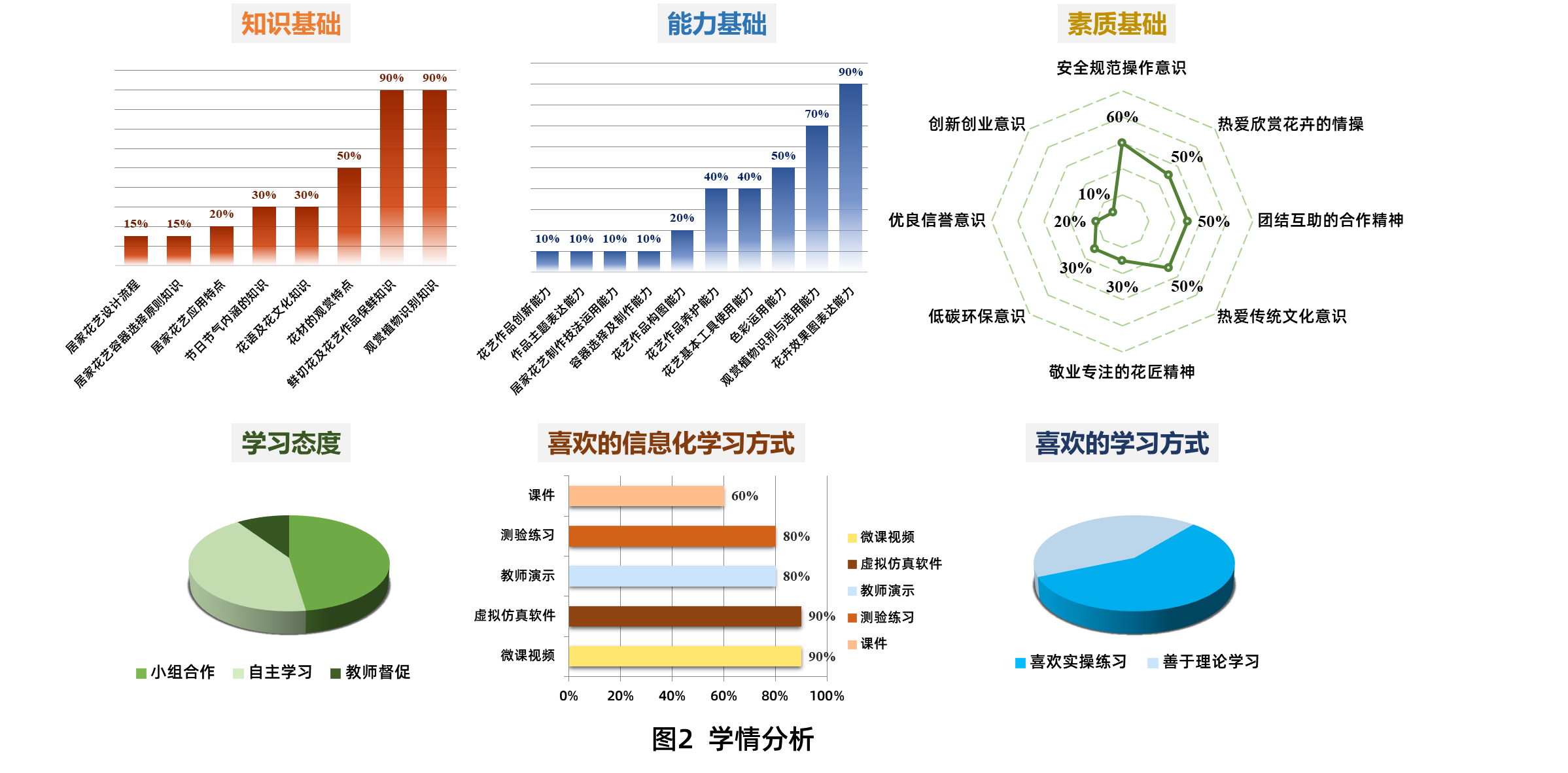 授课对象为园林技术 (3+2)专业一年级学生,通过前期的课程学习,学生具备一定专业知识与技能,具体学情如下: