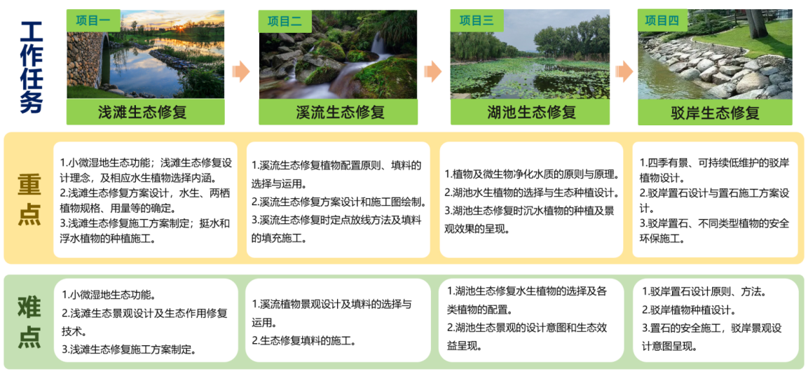 《园林植物造景》是中等职业学校园林绿化专业核心课程,是根据园林植物造景典型工作任务直接转化的专业核心课程。“小微湿地生态修复”是该课程中的一个项目模块。