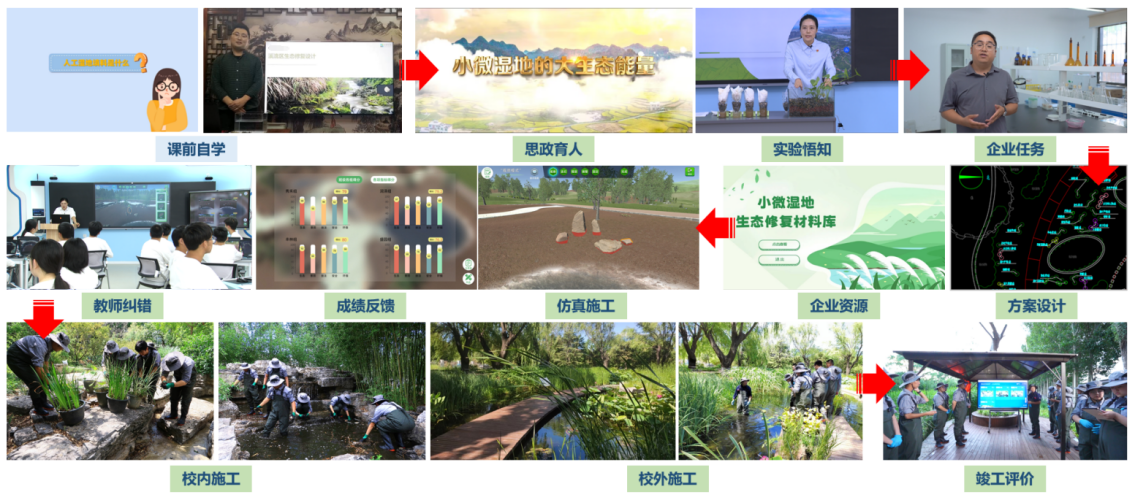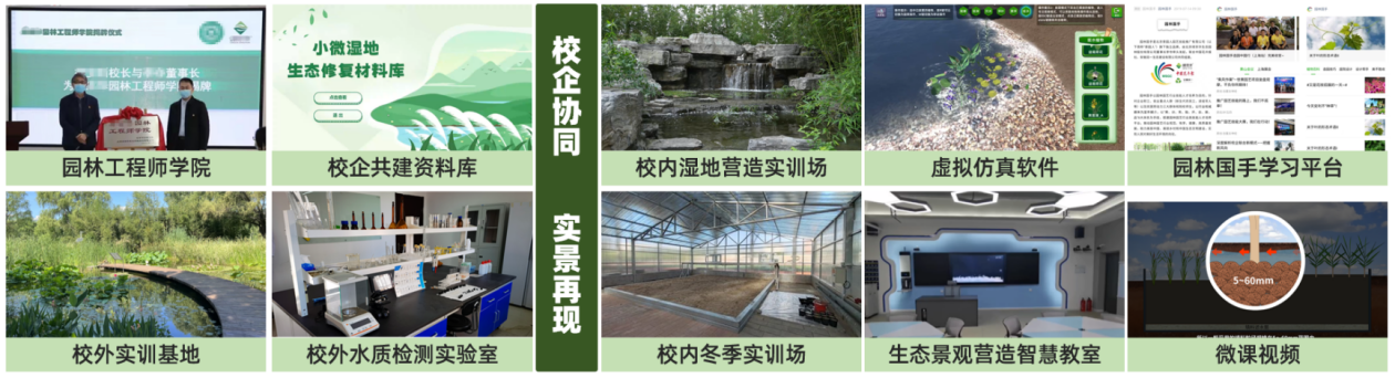 校企共建小微湿地营造示范实训场、小微湿地修复案例库和资料库及视频动画等教学资源,打造湿地生态修复虚拟实训系统,实现了节约施工材料的目的。