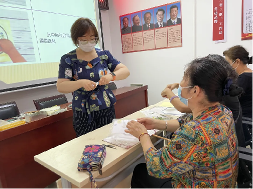 随后,在老师的指导下,居民们认识工具、学习花材,再动手创意构图、组合花材、贴膜,一双双巧手再加一点灵感,一个个精美、雅致脱俗的创意团扇制作完成。