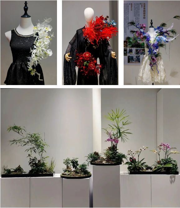 由花艺专业和园林专业师生共同制作的7件花艺及植物微景观作品在“十年绽韵,馆载芳华”中国插花花艺博物馆十周年纪念活动中精彩展出。其中人体花艺作品尤为亮眼,师生团队从花材甄选、色彩搭配到造型设计层层打磨,作品手工精致、构思巧妙,将自然灵韵与艺术美感深度融合,充分展现了专业教学的丰硕成果。