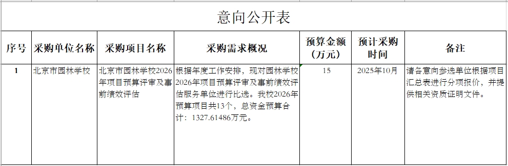北京市园林学校2026年项目预算评审及事前绩效评估服务采购结果公示