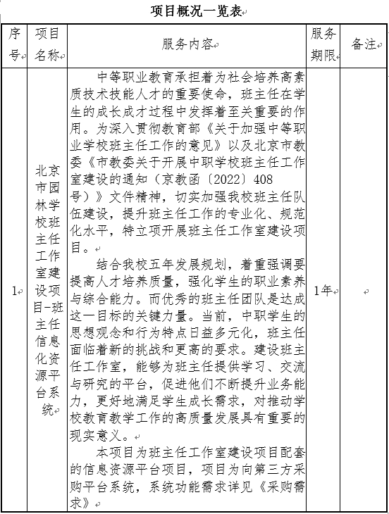 北京市园林学校-班主任信息化资源平台系统-比选邀请