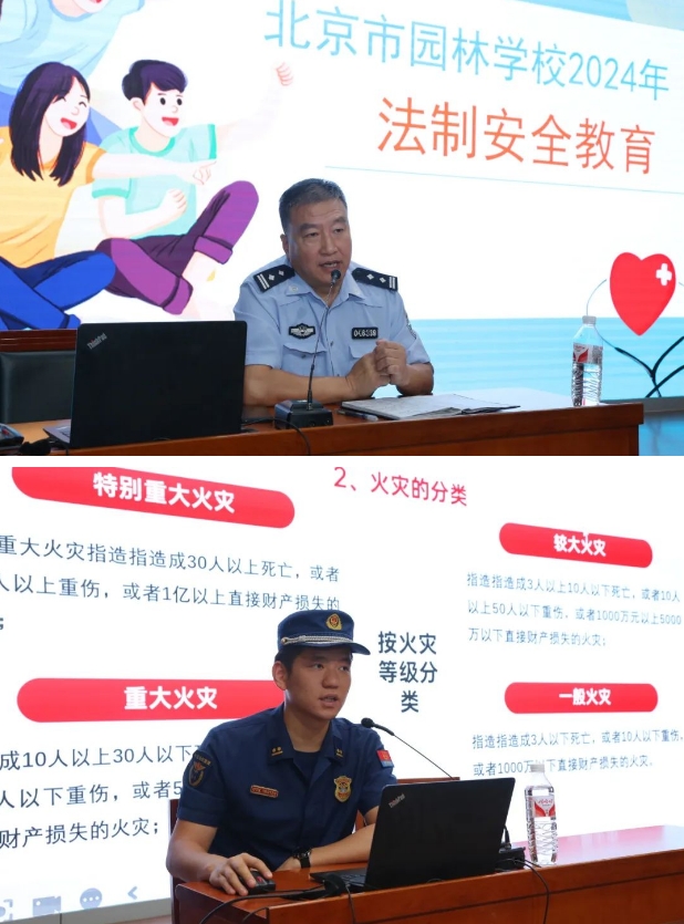 法治副校长、拱辰派出所张会兵警官以及良乡消防站田锦清副站长分别为同学们带来安全教育第一课。围绕国家安全、反欺凌、反暴力、防诈骗、预防犯罪、消防安全及用电知识等内容,通过理论讲解、案例剖析和现场互动问答,提高学生法律意识和自我防护能力,提升预防火灾和紧急逃生本领,为新学期全面做好校园安全工作奠定了良好的基础。