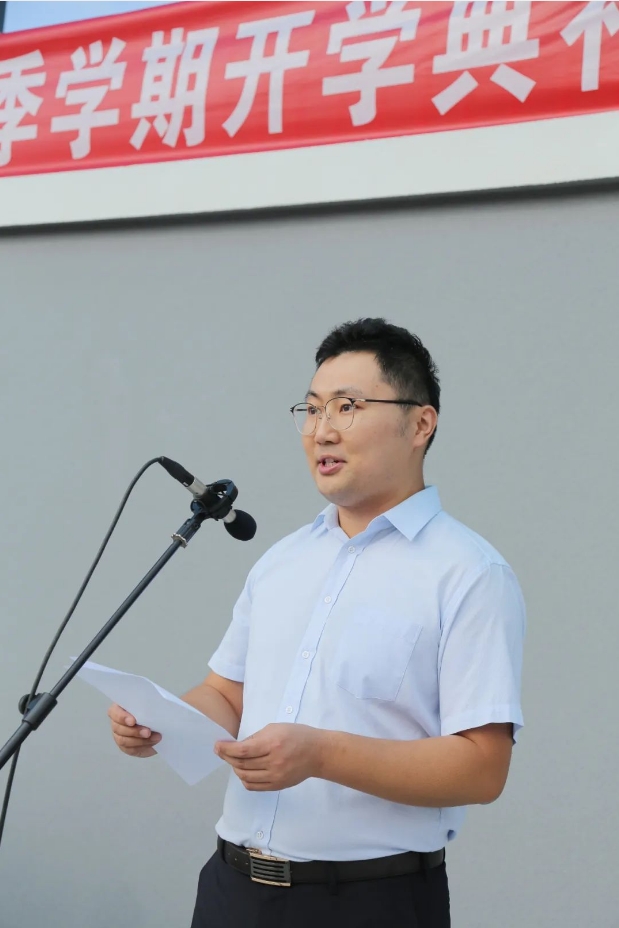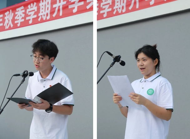 在校生代表2022级3班王一鸣同学发言。他首先感谢悉心教导的老师们,向2024级新同学介绍景色宜人的校园环境和丰富多彩的学习生活。号召同学们热爱学校,保护校园环境;讲文明、有礼貌,努力展现园林学子风采;刻苦学习,以优异的成绩回报老师,回报学校。
