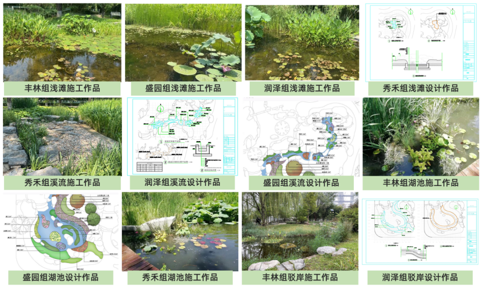 设计任务中,针对教师和评标专家的点评,深化设计理念和完善方案,力求精益求精。施工任务中,绘制竣工图,维护小微湿地,观察生态修复情况,体验生命和自然的魅力。