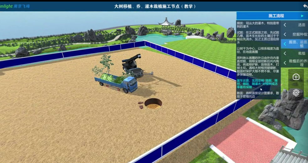 构建一个开放的虚拟仿真培训平台,对现实中的园林工程施工过程进行模拟,可以使每位学生通过仿真装置,能亲自动手操作,观察现象,判断正误,激发学习兴趣,并克服因客观因素带来实习实训中的不足。